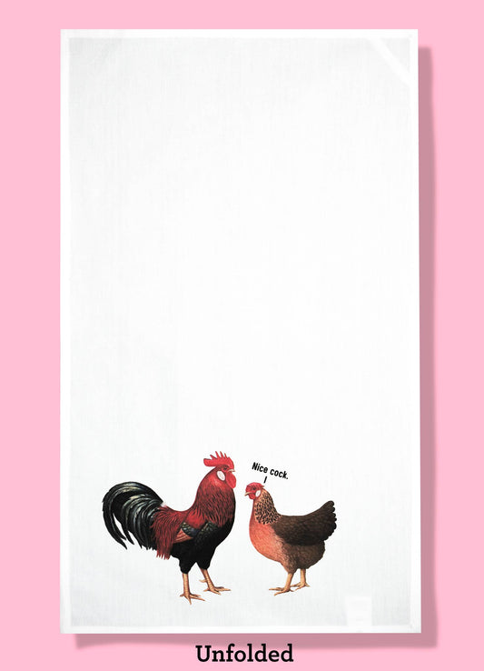 Bad Grandma Designs - Nice Cock - Chicken and Rooster Dishtowel